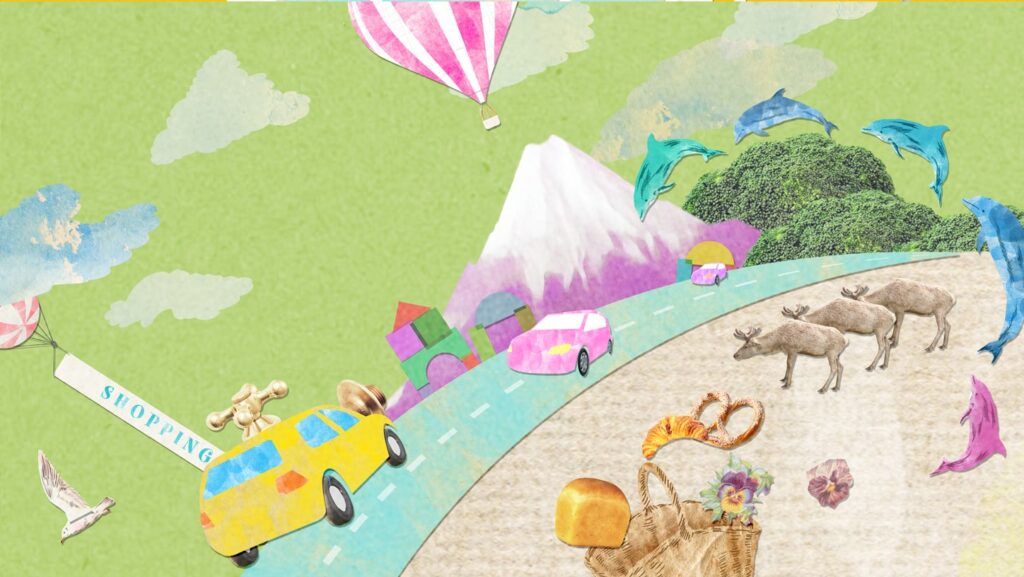 イラスト|ニッポンレンタカーCM 「ニッポンレンタカーでGO!」篇 背景アニメーションコラージュ